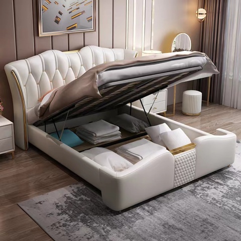 Роскошная мебель кровать с хранения кожаная ткань кровати мебель для спальни набор